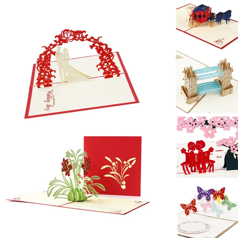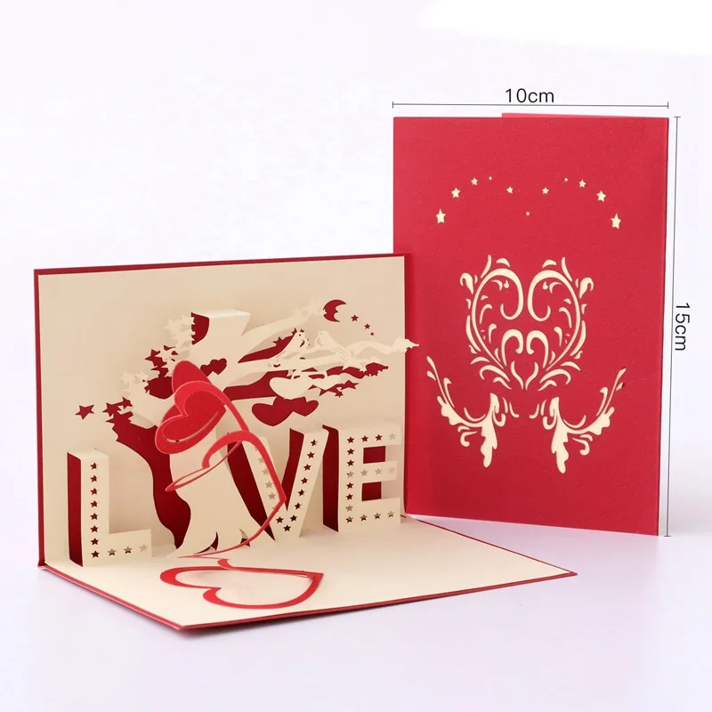 Wedding 3D Pop UP Greeting Invitation Cards Birthday Valentines Day Anniversary Gift Postcard With Envelope Laser Cut Postcard